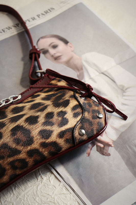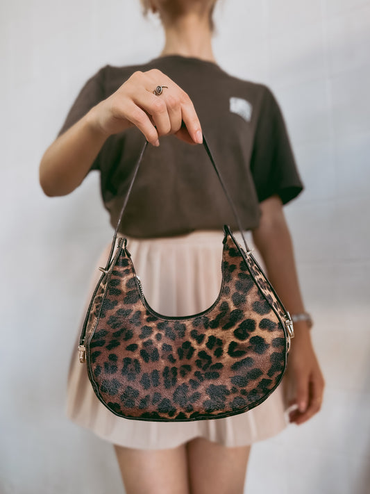 Leopard Print Crescent-Shaped One Shoulder Bag